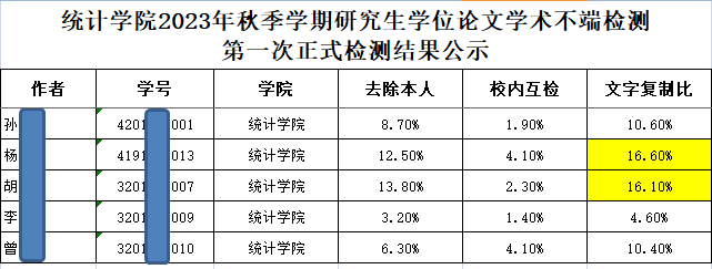 新葡萄8883官网2023年秋季学期研究生学位论文学术不端检测 第一次正式检测结果公示