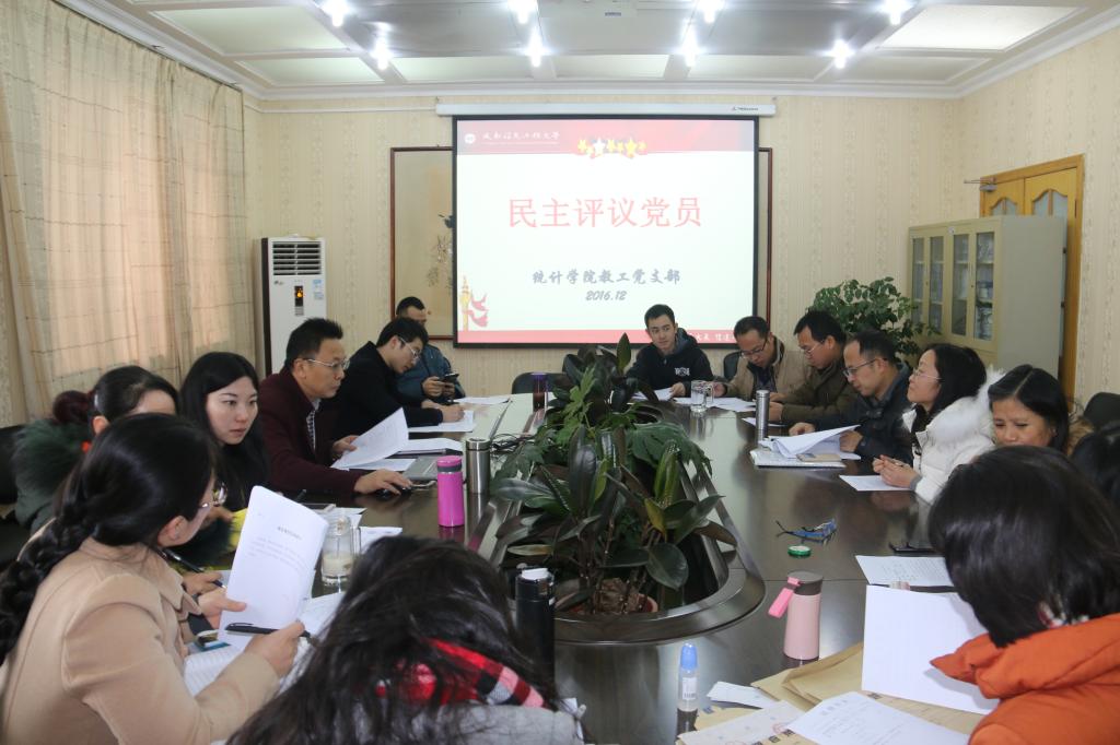 首先,丛日玉从民主评议的目的是提高党员的思想认识出发,谈到:民主评议党员是加强党的建设的一项重要制度,是激励党员、纯洁组织、整顿队伍的重要举措,是从严治党,加强党员教育、管理和监督的有效措施。接着,要求所有支部党员参与民主评议并按照坚持实事求是、坚持民主公开、坚持平等的原则进行,民主评议党员标准按照《关于印发<新葡萄8883官网教职工党员合格党员具体标准>、<新葡萄8883官网员工党员合格党员具体标准>和<新葡萄8883官网教职工党员不合格党员具体表现>、<新葡萄8883官网员工党员不合格党员具体表现>的通知》(成信党发〔2016〕 126号)执行。