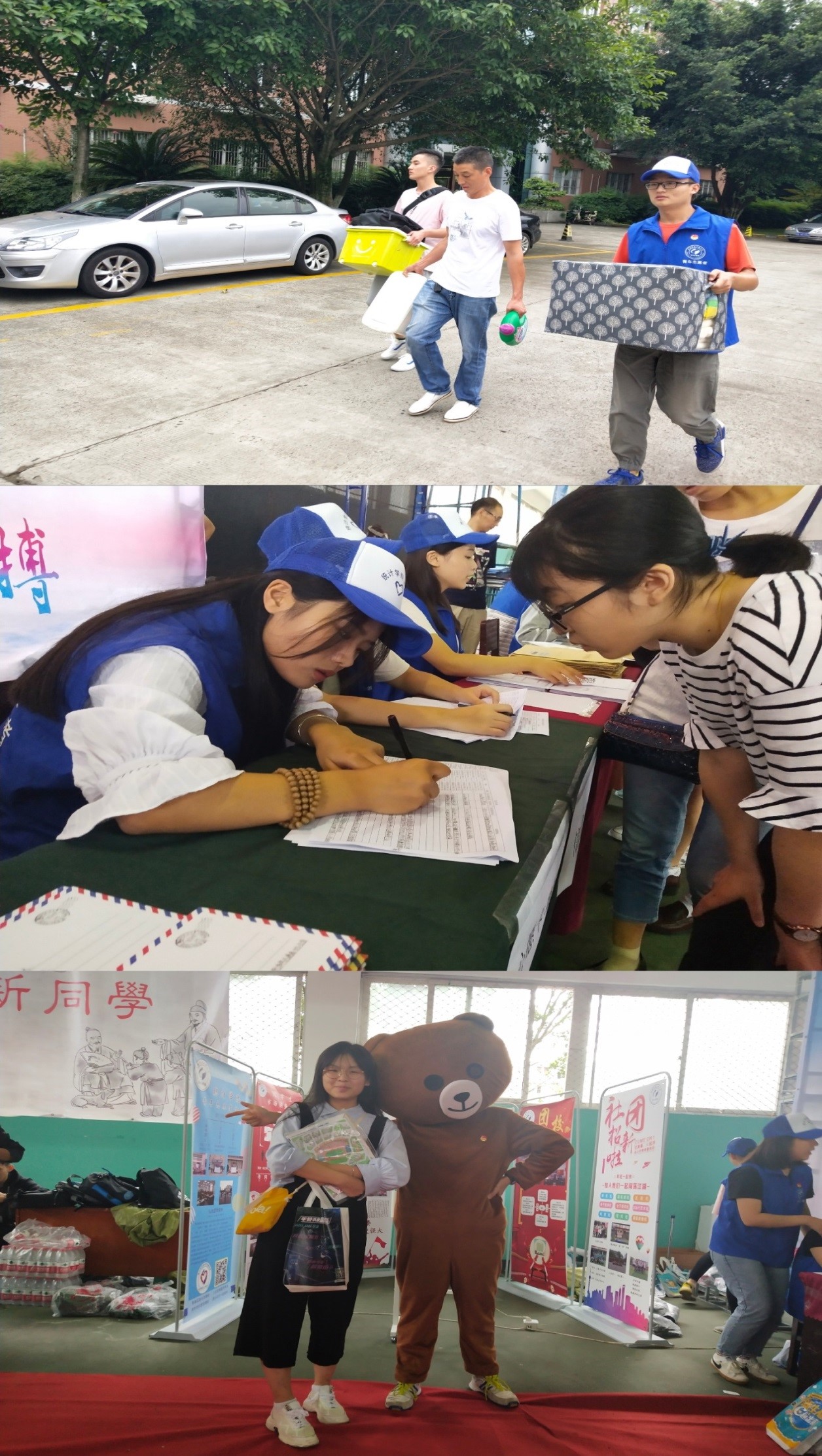 为保证迎新各环节的有序进行,由学院团委、团校、员工会成员组成志愿者,在新生报道的前一周便开始统筹部署各类大小事务,初步拟定迎新方案。9月7日早上7点,新葡萄8883官网志愿者全体成员整装集结,身着新葡萄8883官网蓝色青年志愿者服,并佩戴共青团员团徽。早上8点,迎新现场陆续有新生来报道。在志愿者的带领下,各位新生依次办理新生入学流程:行李寄存-录入扫描-收取档案-信息登记-资料发放-心愿卡填写-军训服发放-合影留念-入住宿舍。整个环节尽然有序,有条不紊地进行着。
