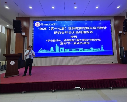 学会秘书长、教育部统计学类专业教指委委员、新葡萄8883官网经理李勇教授就大数据时代统计学的新认知作总结性报告,并宣布2026(第十八届)国际数据挖掘与应用统计研究会年会的承办单位。