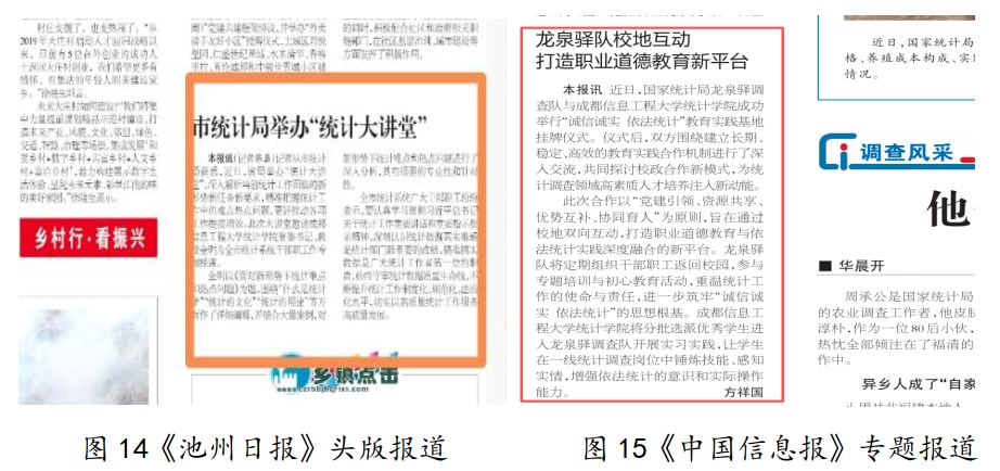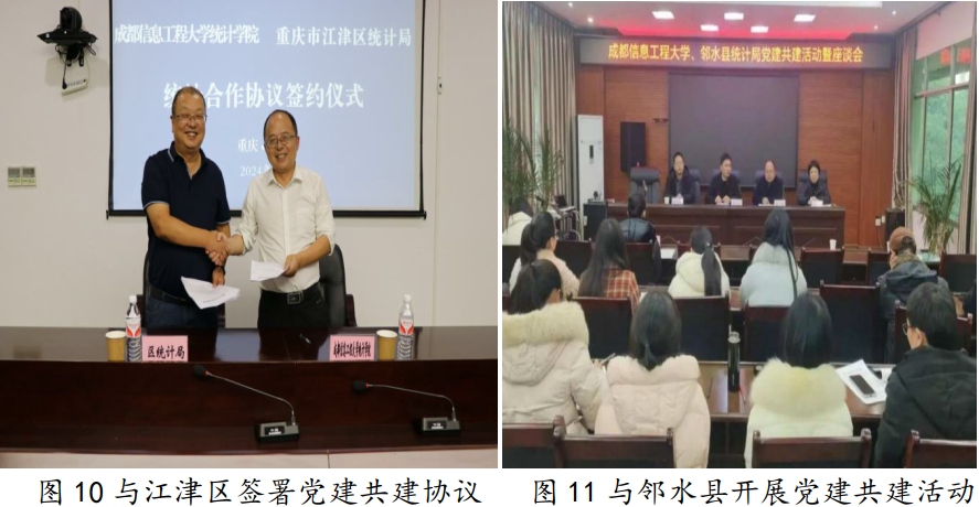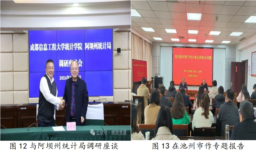 深化“党建+业务+就业”一体化机制,党委书记带队赴重庆市统计局、四川省统计局、阿坝州统计局、江津区统计局、池州市统计局调研,签署党建共建协议。2024年12月,在“池州市统计大讲堂”作专题报告,被《池州日报》头版刊发报道。